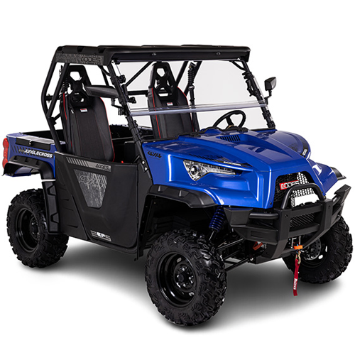 The Junglecross series has got you covered whether you're looking for a weekend warrior or a domestic workhorse. Using the most tried-and-true layout we've ever used. Half doors, windshield, roof with lightbars, 3500 lb. winch, turn signals, horn, led lighting, and automatic dump bed are just some of the quality features included in these units. These units can accommodate the whole family, with space for up to five adults. Our sport option for the LT trim level includes larger shocks and aluminum wheels, giving you 15 inches of ground clearance for driving through the most difficult terrain.
