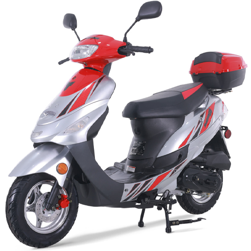 Whether you’re in a big city or a small town, the Classic 50 will get you there not only efficiently, but in style as well. We revamped our bestselling 49cc scooter model and brought it into the future. With all new features and a brand new look, the Classic 50 was designed with the rider in mind. Dual rear shocks make for a smoother ride and front to back LED lights ensure you’ll never be in the dark. A convenient dual USB port on the dash allows you to charge your phone on the go so you’re always connected with your friends and family. Stylish new color options with color matching seats give the Classic 50 a sharp and sporty edge. As always, it still comes standard with a lockable rear cargo trunk and under the seat storage for whatever supplies you’re traveling with. Whether you’re looking to save money on fuel or need an easier way around town, the Classic 50 has you covered at an affordable price.