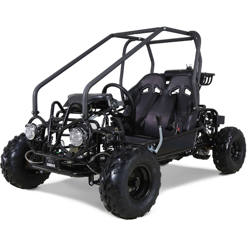 Being a youth go-kart, safety is always key. Ride worry-free inside the fully enclosed roll and securely fastened with a safety harness for both riders. A remote control shut-off can off the engine with a simple button push if learning is still in progress. With large tires and plenty of ground clearance, you won’t get stuck or high-centered. Rugged enough for big kids and accessible for smaller kids, the GK110’s perfect size makes it the number one choice for families ready for outdoor fun.