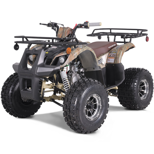 Decked out with sharp, new decal designs and fresh color options, the T-Force Platinum is sure to impress fellow riders along the way. Rated for kids 12 and up, this mid-size utility style ATV provides a little more power for the smaller yet experienced riders with a 120cc 4 stroke engine and automatic transmission with reverse. As with all of our youth ATV’s, safe riding is ensured with the speed governor and remote wireless shut off, both controlled by responsible adults. The T-Force Platinum still comes stocked with the signature chrome aluminum wheels and fierce body style, but with the eye-catching aesthetic. Like the B110 and D125, the T-Force Platinum features color matching accents and frame, Tao Motor branded seat, front to back LED lights, plus adjustable front and rear shocks and a Digital Instrument cluster and engine hour meter. With other great design upgrades like the powder coated color matching frame and ergonomic gear selector, the T-Force Platinum checks all the boxes for a safe, sturdy, and comfortable ride.